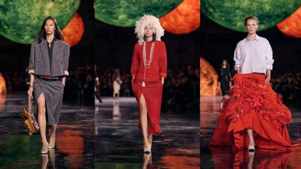 A apresentação da coleção de estreia de Blazy ocorreu na noite da segunda-feira, 6 de outubro, no Grand Palais. Com uma cenografia assinada pelo estúdio criativo Bureau Betak, o palco foi um cenário inspirado pelo sistema solar, estabelecendo um tom de grandiosidade.